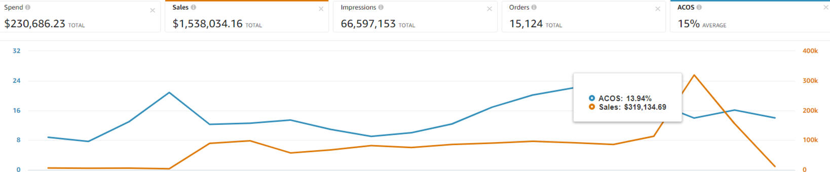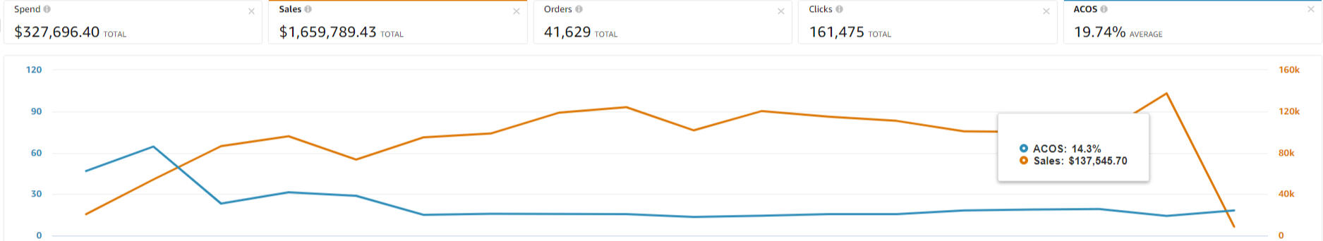 We helped this brand grow from $10,000 to over $300,000 in monthly Amazon sales, achieving a sustainable 14% ACoS.